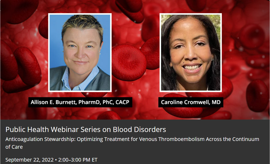 This webinar is free and open to public health professionals, clinicians, and researchers who desire more information about venous thromboembolism. Advance registration is required, and the number of attendees is limited.