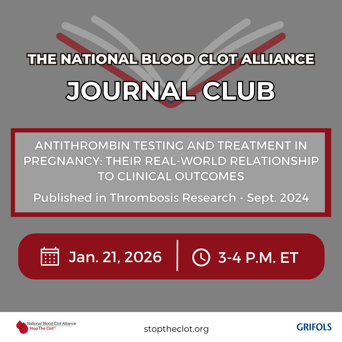 Join us on Wednesday, January 21 from 3-4 p.m. ET for a discussion on the article, “Antithrombin Testing and Treatment in Pregnancy: Their Real-World Relationship to Clinical Outcomes,” published in Thrombosis Research in September 2024.
