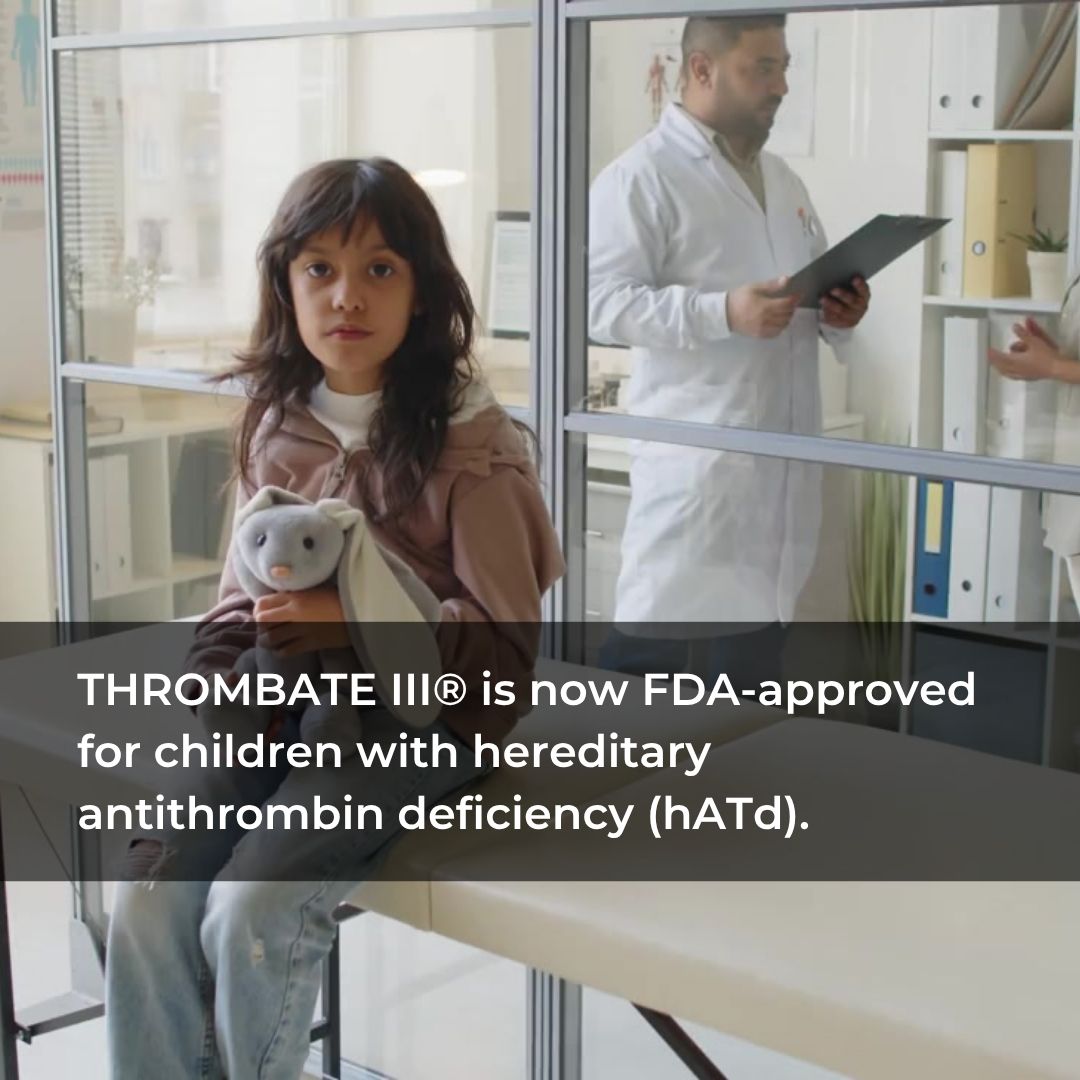 THROMBATE III has been used to treat adults with hATd since 1991. With this new approval, it becomes the first and only antithrombin replacement product approved for both adults and children with hATd.